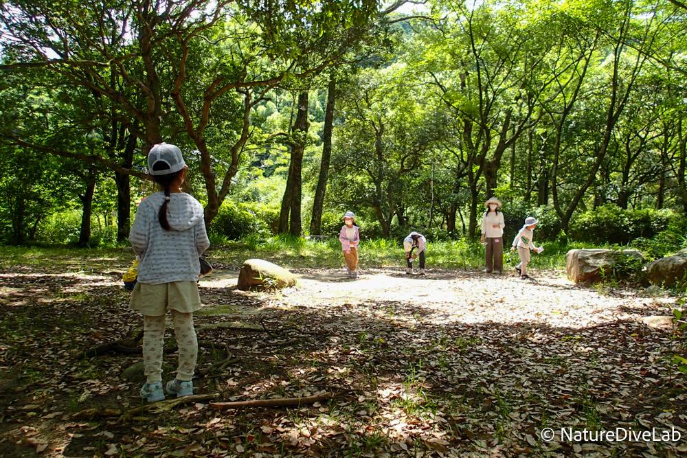 森の中で探しものができるように、ちょっと目を慣らしてもらい、