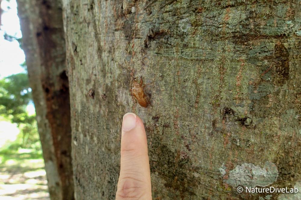 木の幹に体をそわせ擬態する子