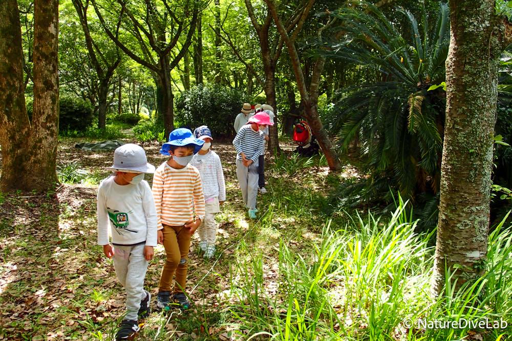 お題の書かれたカードをもって、一緒に公園の森へ移動しました。