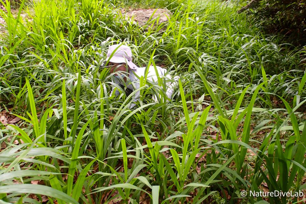 草むらに寝転び動かず隠れる子