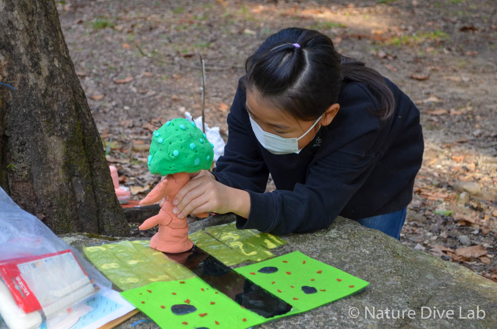 1日目に自然のいろんな見方を体感(NDL担当)し、感じたことを作品に。作品は2日目にこもれび広場に展示しました。ご家族の方や公園利用の方までたくさんの方が見に来てくださいました。自然の中で体感したものが形になっていく過程がとても素晴らしく、胸が熱くなりました。
